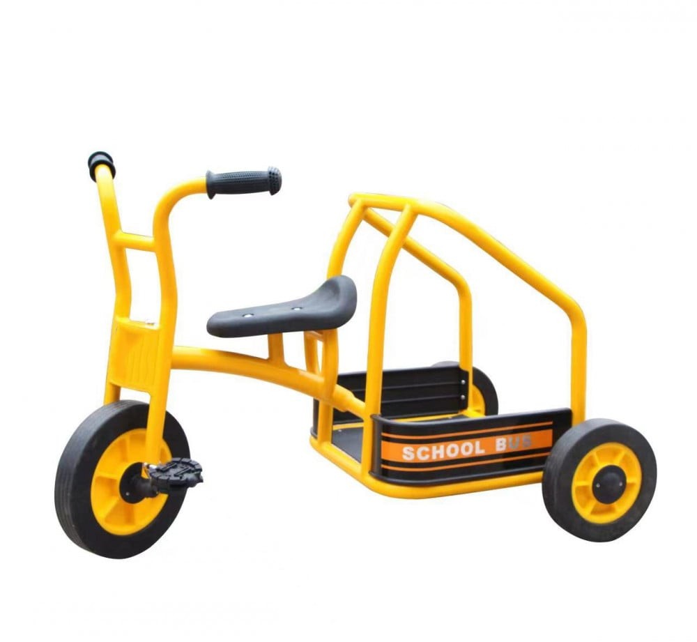 دراجه ثلاثيه العجلات لون اصفر ذو مقعد خلفي , هيكل قوي و متين , أمنه وسهله الاستخدام