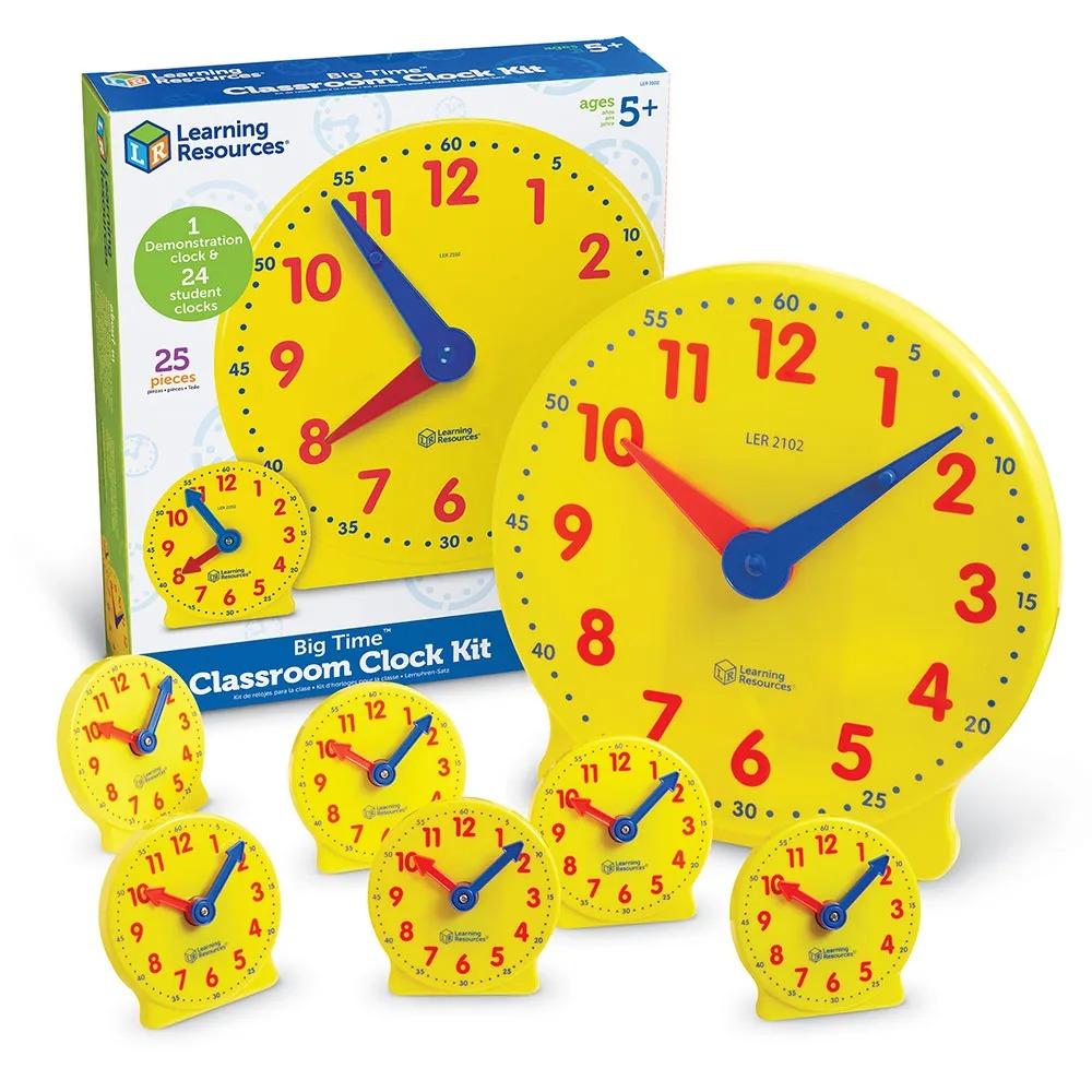 تحافظ التروس المخفية على العلاقات الصحيحة بين الساعات والدقائق أثناء عرض مفاهيم تحديد الوقت. يدعم الترميز اللوني فهم الطلاب، كما أن عقارب الساعة المتينة والمسننة مصممة لتدوم طويلاً!