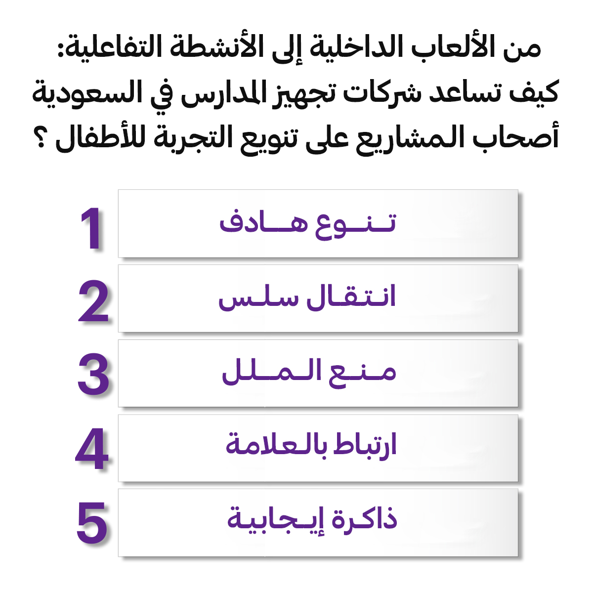 من الألعاب الداخلية إلى الأنشطة التفاعلية: كيف تساعد شركات تجهيز المدارس في السعودية أصحاب المشاريع على تنويع التجربة للأطفال؟