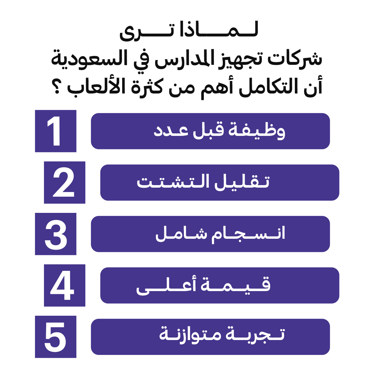 لماذا ترى شركات تجهيز المدارس في السعودية أن التكامل أهم من كثرة الألعاب؟
