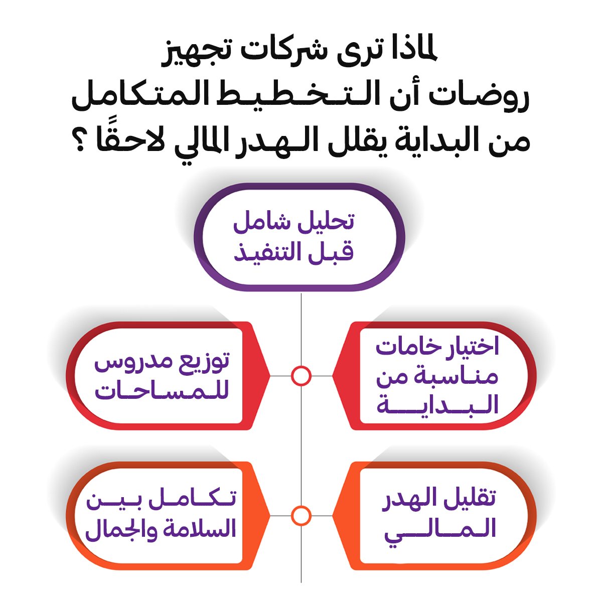 التخطيط المسبق يسمح بتحديد مواقع الأركان، مسارات الحركة، ونقاط الإشراف، مما يقلل التغييرات المستقبلية ويمنع الهدر المالي.